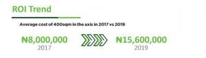 Our developments in the axis: GreenPark and Lekki Pearl Estates have also witnessed massive increase in valuation. A 400sqm property in GreenPark has experienced an almost 100% in less than three years.